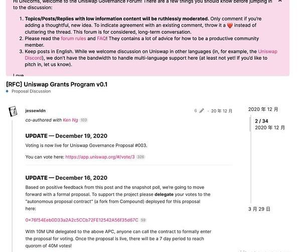 UniswaoGovernance向更廣泛的社區征求意見https://gov.uniswap.org/t/rfc-uniswap-grants-program-v0-1/9081