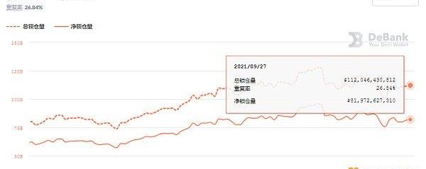 Ethereum鏈上DeFi鎖定資產前十排名及鎖倉量,數據來源:Debank
