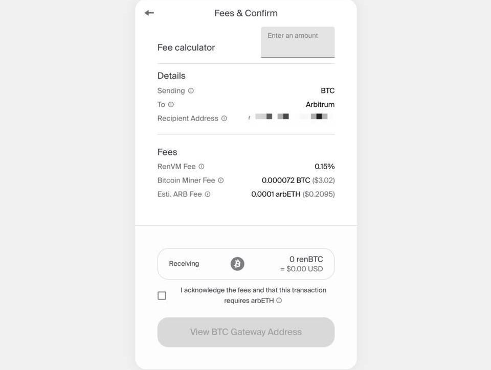 跨鏈成本:由于不觸及以太坊L1,所以僅需比特幣礦工費+Arbitrum交易費+協議收費
