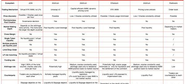 大多數的協議選擇了后者。因此,dYdX選擇了Starkware,Synthetix選擇了Optimism,MCDEX等待在Arbitrum上線,Perpetual在xDAI上運行其v1版本,同時準備在Arbitrum上運行其v2版本,還有很多協議選擇在低延遲的公鏈如Solana上發行。