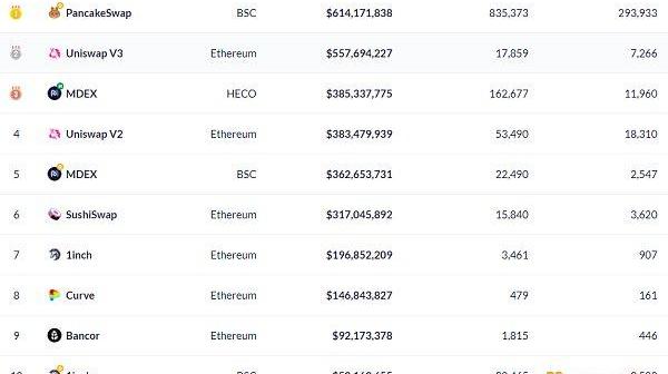 過去24小時去中心化交易所的交易量數據來源:Debank