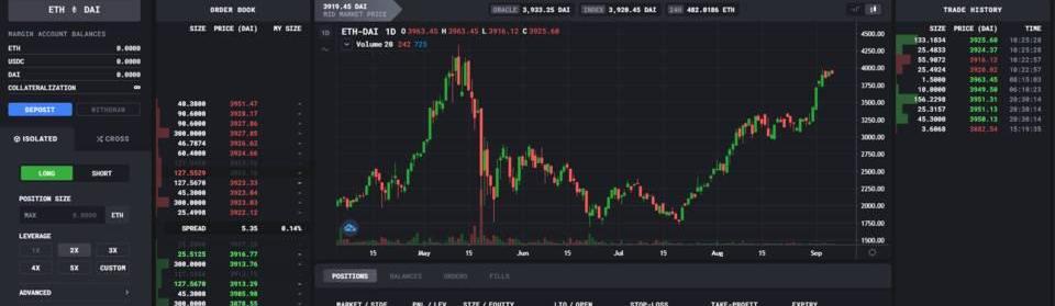 保證金交易,即V1版本的期貨產品,架設在以太坊主網上,最大杠桿為10倍,可以進行多空兩個方向的交易,即有最大10X多和10X空并具有限價單和止損單功能。