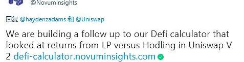 NovumInsights稱將提供DeFi計算器功能,為Uniswap交易對計算流動性回報。