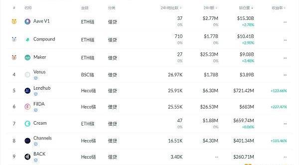 鎖倉量排名前十的借貸平臺排名來源:DeFibox