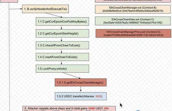 XRP/HKD-7.22%8月10日,異構跨鏈協議PolyNetwork遭到攻擊,損失達到6.1億美元,包含2,857ETH、9,630萬USDC、26,000WETH、1,000WBTC、3,340萬USDT、2,590億SHIB、14renBTC、673,000DAI和43,000UNI轉至以太坊,6,600BNB、8,760萬USDC、26,600ETH、1,000BTCb、3,210萬BUSD轉至BSC,8,500萬USDC轉至Polygon。