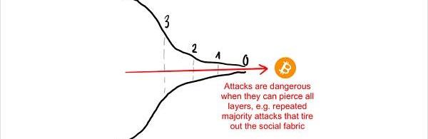 我發現洋蔥模型可以很好地剖析每一層是如何為一條區塊鏈的安全保駕護航的。在某種程度上來說,該模型是我之前的文章《剖析比特幣的社會合約》的延伸:任何公鏈都源自一套共同的核心價值觀,描繪系統愿景的藍圖。