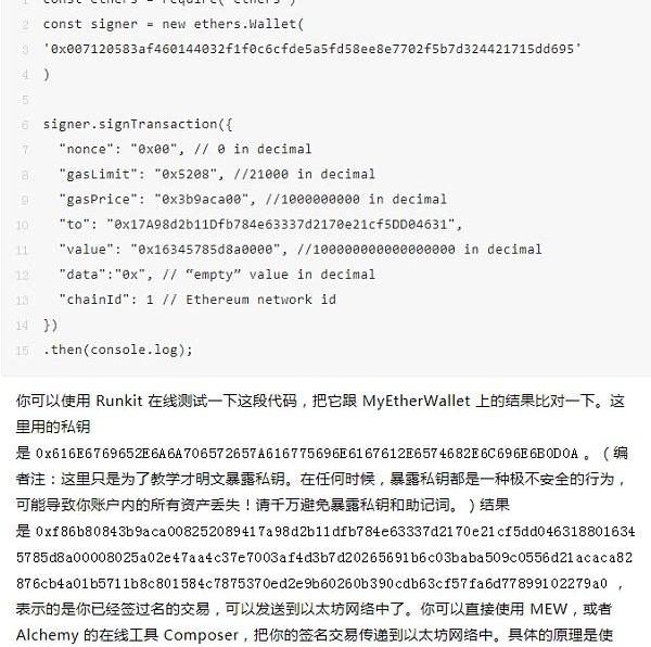 最后,也很重要的是,我們還有?data?和?nonce?。如果你想要在交易中添加額外的數據,你就需要用到?data?字段。在你跟智能合約交互時,data字段可以包含你給合約的指令。而?nonce?則是以太坊網絡用來跟蹤你的賬戶狀態、避免多重支付和重放攻擊的一個數值。當你的交易因為gasfee太低而暫時無法打包的時候,你可以使用同一個nonce但指定更高的gasprice來“替換”你的那筆卡住的交易;一旦這筆“更快”的交易得以打包上鏈,你原來簽名的那筆交易就會被以太坊的節點拋棄掉了。