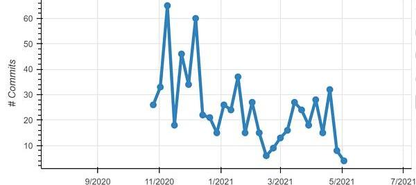 據公開資料,Perp在2020年12月14日上線,隨后又持續在開發新功能,其團隊至少有4名開發者。從其代碼更新的頻率與貢獻者情況看,與公開資料的情況相符。