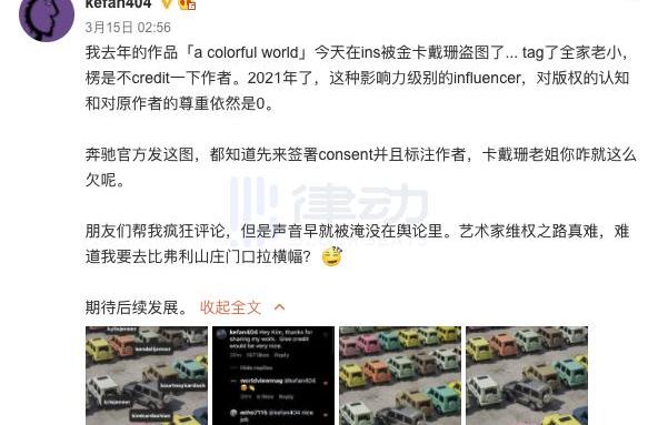 那時Beeple登陸佳士得,作品賣出了6900萬美元的天價;那時kefan404發布了一條微博,控訴金·卡戴珊的侵權行為。