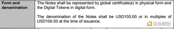 形式和面值:債券形式同時提供物理實體的全球證書和數字形式的數字代幣。票據面額為100美元或100美元的倍數。