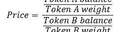 Balancer資金池中可以允許有2-8種資產。池中的每一對代幣都有一個價格,這個價格取決于該特定代幣的余額B和權重W。從形式上看,交易執行的價格是按照代幣余額與代幣權重的比值來計算的。