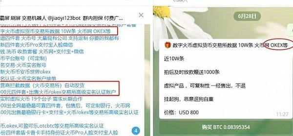 暗網、Telegram等平臺長期有出售和求購交易所用戶信息的帖子。