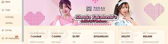 根據官網顯示,Bakeryswa平臺鑄造了近20萬個NFT作品,NFT資產的交易次數高達65萬筆,交易量為3108萬BAKE,約為5594萬美元。