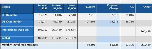 旅行規則指出每一筆交易到底有多少人,這邊分成美國本土、美國跨境支付、國際和全球四個區域。