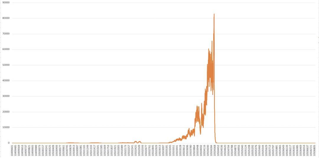 我們認為在Ropsten上之所以燃燒了這么多的ETH,是因為網絡有許多不尋常的連續的擁擠的區塊,這些擁擠的區塊將BaseGasPrice推到很高,并且持續了很長一段時間。一個很好的證明是區塊高度10503157到10504352,BaseGasPrice從98.45Gwei增加到了82851Gwei,在1195個區塊中增長了841倍。