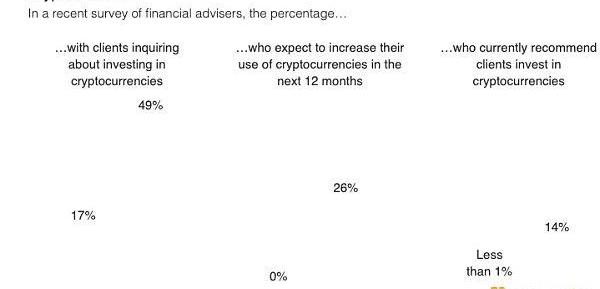 這是一個“宏圖壯志”:投資者目前在IRAs和401s中有22.5萬億美元的資金。金融規劃協會和另外兩個組織最近對500多名金融顧問進行了一項調查,其中14%的顧問表示他們使用或推薦加密貨幣,而在2019年和2020年,只有不到1%的顧問表示使用或推薦加密貨幣。本月,專注于小公司的401計劃提供商ForUsAllInc.宣布將允許其管理計劃中的員工將其401供款的5%投資于比特幣、以太幣、萊特幣等。