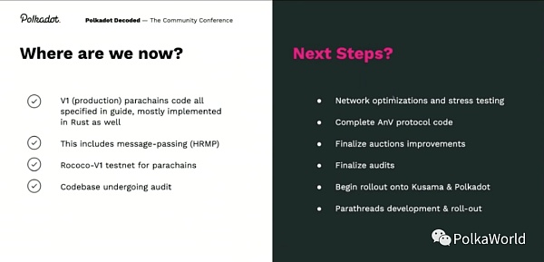 V1(生產級別)平行鏈代碼已經全部在指南中進行了規范,Rust?實現已經完成了大部分,只差幾個子系統的實現了