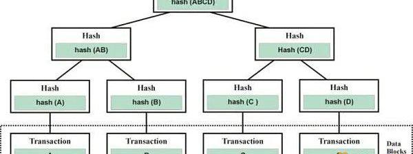 給區塊中的每筆交易對應于Merkle樹中的一個葉子,通過散列單筆交易從這些葉子遞歸構建。