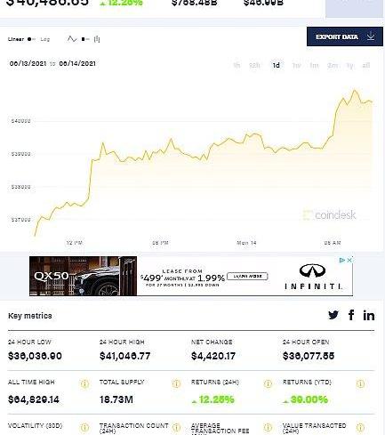 在瓊斯和特斯拉首席執行官埃隆·馬斯克(ElonMusk)發表評論后,比特幣的價格周一躍升至4萬美元以上。