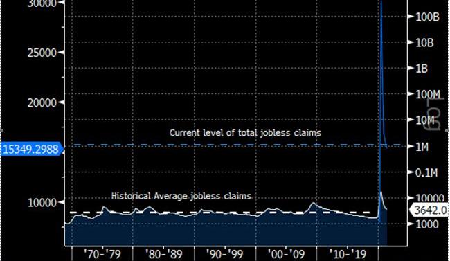 下面的圖表2則只是為了強調當前,我們的就業水平在歷史背景下的位置。盡管國家仍有大約1535萬人在申請失業救濟,但GDP的增長是多么令人難以置信。相比之下,在COVID危機之前,大約有160萬人申請失業救濟,而當時的GDP為21.8萬億美元。