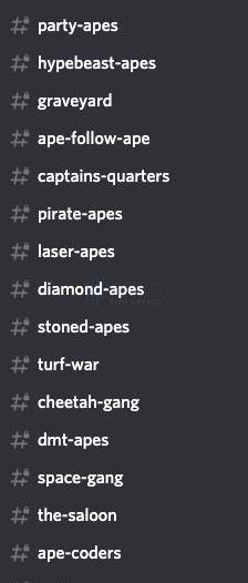 除此之外,擁有不同性狀的猿猴們也都組成了自己的「小團體」,在BoredApeYachtClub的Discord社區里面有著眾多不同分類的頻道。