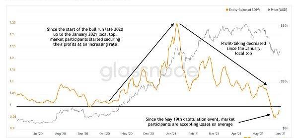 圖2:實體調整后支出產出利潤率(Entity-AdjustedSpentOutputProfitRatio,SOPR)的7天移動平均值?