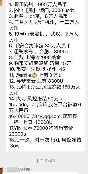 “在XX怎么這么多難友被凍結,不能提幣,不能賣幣的?”5月底,維權群內突然多了幾十人,發起接龍之后迅速有20位被凍結賬戶的群友填寫了個人信息和金額: