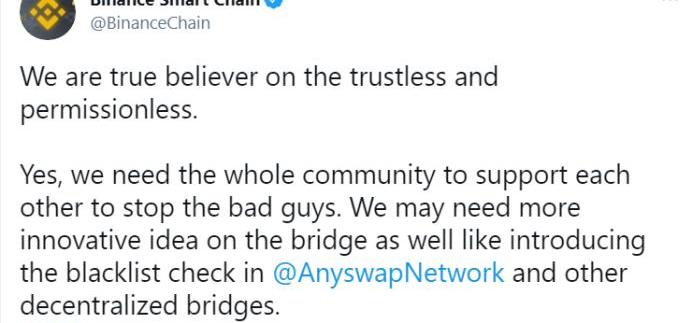 因此,BSC官方今天建議,對這些去中心化的跨鏈協議上引入黑名單機制或者其他方案,應對黑客攻擊。