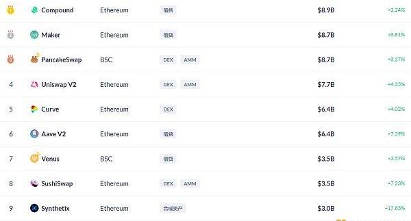 鎖倉量排名前十的借貸平臺排名來源:DeFibox