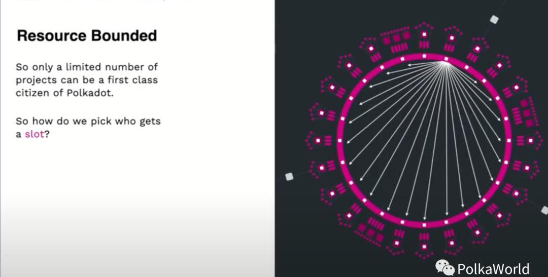 樂觀地來講,我們認為波卡上一次性最多可以支持100條平行鏈,所以說我們需要100個插槽。每一個插槽之間都是平等的。