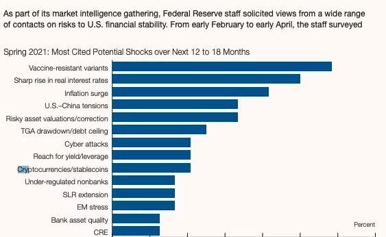 調查中提到的最高風險是“疫苗抵抗力變化”,其次是“實際利率急劇上升”和“通貨膨脹激增”。
