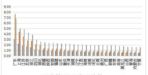 與綜合指數排行結果趨同,企業指數最高的前五個省市為廣東、上海、江蘇、浙江以及北京,企業指數均高于1.5,說明這些區域具有數字人才需求的企業相對而言數量較多。