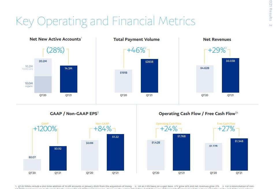 在未來展望方面,PayPal預計在Q2調整EPS預期為1.12美元,凈收益預估62.5億美元。而負責調查該公司的Refinitiv分析師則預期其調整后EPS為1.10美元,凈收益61.6億美元。