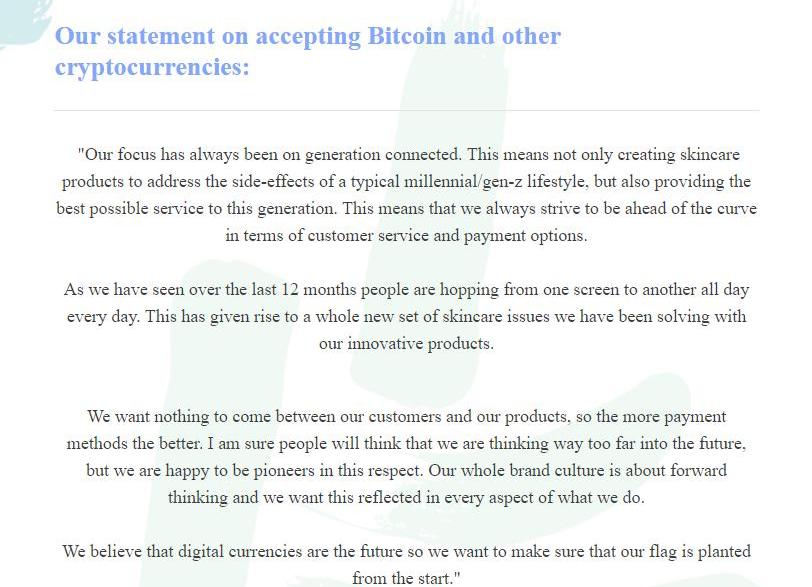 4月6日,總部位于英國的DTC品牌WakeSkincare宣布接受BTC等加密貨幣作為支付方式。用戶可在其Shopify結賬頁面中使用Coinbase提供的比特幣和以太坊支付選項。此外,該品牌也加入了一系列通過支付或獎勵計劃。