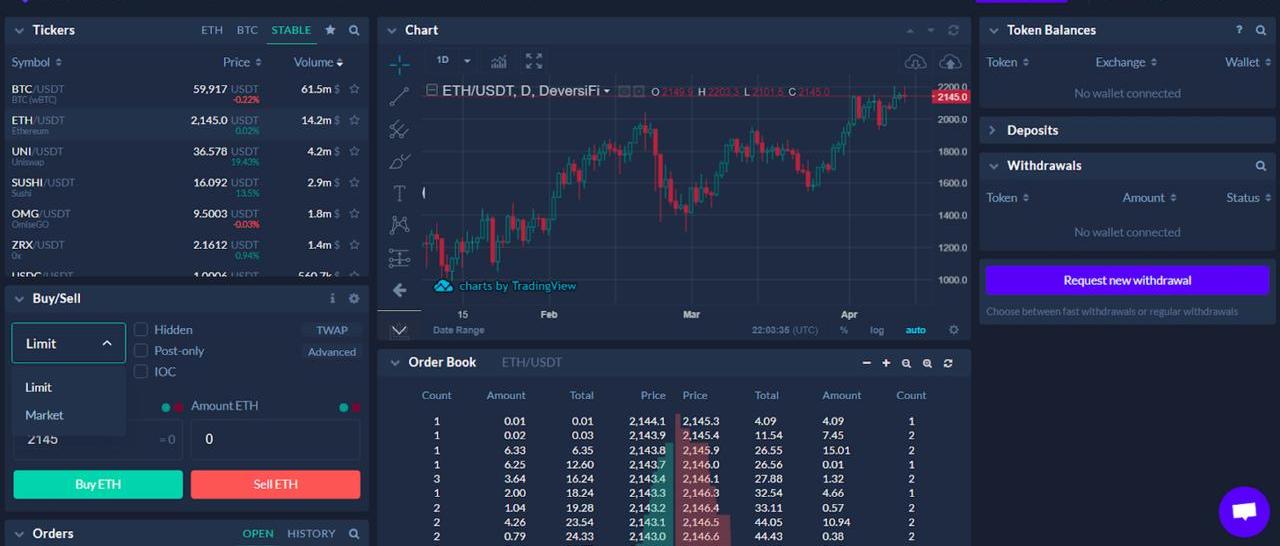 同樣是StarkWare的StarkEx可擴展性底層,DeversiFi是一個高效、一站式的去中心交易所,他們的功能包括限價訂單、OTC交易和免費轉賬。