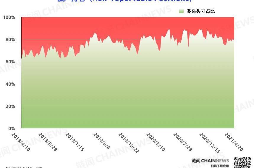 不過值得注意的一點是,在最新統計周期的調倉過程中這類賬戶對于空單的減持幅度明顯更大,這意味著雖然大型機構追多的腳步有所放緩,但是并沒有直接呈現出激烈的「做空」欲望,機構對于市場整體的偏多態度仍從側面有所顯現。