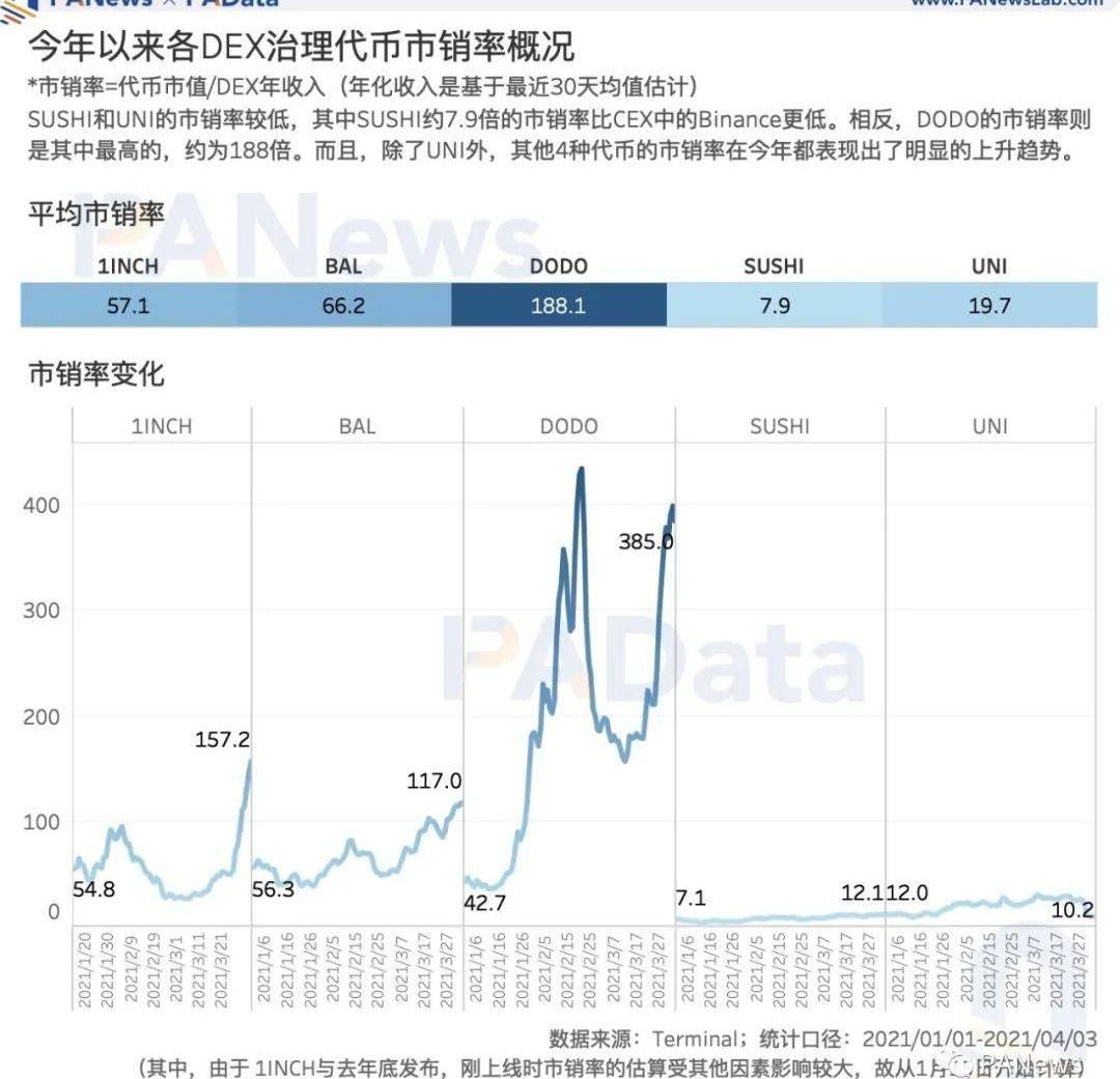 對DEX治理代幣的估值偏差較大