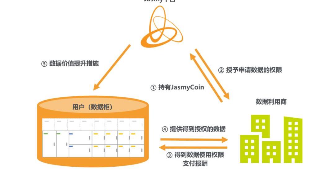 2.終端的數據存儲在Jasmy的個人數據柜中進行分布式存儲,SKC和SG技術在這個過程里可以將數據定位給個人ID或設備ID。