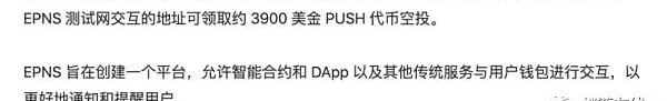 2)這幾天號稱價值3000U的EPNS項目,在項目方規定時間內關注過、測試過的地址就有價值3900U空投。果然錢不是靠賺,是靠大風刮的。