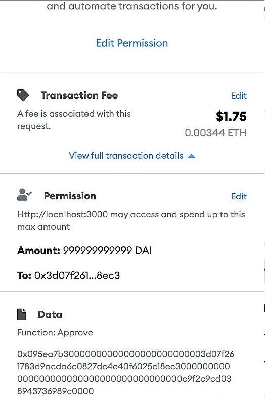 在創建期權時,會有Keep3r的預言機對你所開幣種進行現價喂價,而點擊創建后,小狐貍錢包會提示你正在進行授權,并允許其收取你的DAI,最高花費為999999999DAI。