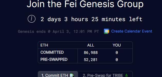 XRP/HKD-5.32%Fei在4月1日凌晨3點開啟了創世啟動,開啟第一天,Fei斬獲了8.6萬個ETH,算下來1.68億美元,更夸張的是有5.2萬個ETH去兌換了治理代幣TRIBE。