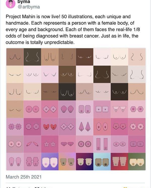藝術家byma發布了Mahin項目,該加密藝術項目由ChainlinkVRF開發,目的是提高公眾對乳腺癌的關注度。