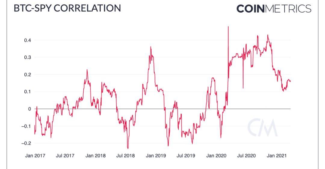盡管有傳統投資者的進入,但BTC與傳統市場的相關性在2021年第一季度有所下降。