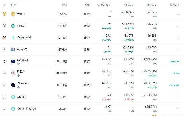 鎖倉量排名前十的借貸平臺排名來源:DeFibox