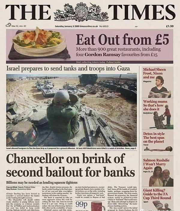 這是英國泰晤士報當天的頭條新聞標題,中本聰借此來暗諷中心化的金融系統。