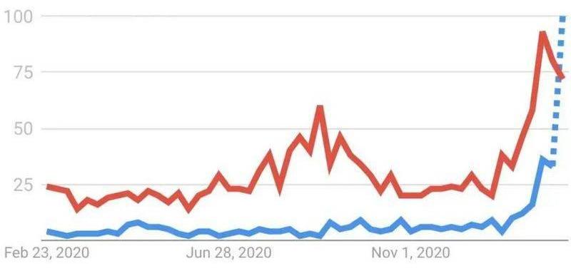 市場熱度層面,根據Google搜索趨勢顯示,NFT的市場關注度也逐漸實現了對DeFi的追趕乃至反超:NFT的搜索熱度于2月21日首次超過DeFi,3月2日首次超過ETH。