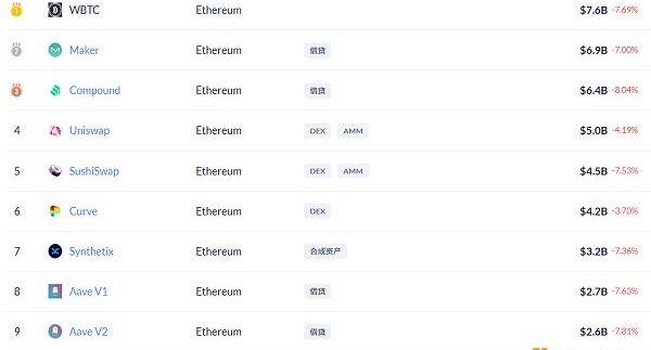 市值前十幣種排名數據來源DeFibox