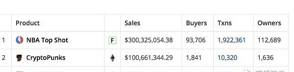 *在過去不到2個月,NBATOPShot的交易額超過3億美元;CryptoPunks的交易額超過1億美元;