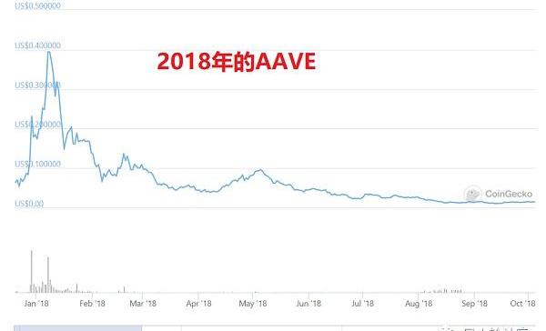回看defi,其實借貸那些東西,在2017年的大牛就開始炒作了,屬于概念階段,這里最典型的一個例子是千倍幣aave2018年從最高點跌去近百倍: