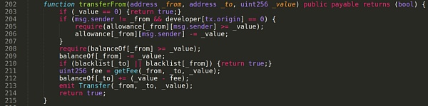 由于Management.getFee()函數背后的邏輯無法得知,因此項目擁有者有可能通過操作Management.getFee()函數返回值的方式,調整每次代幣轉移的費用,進行惡意操作等。